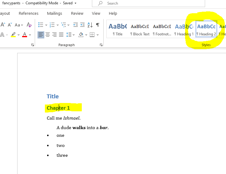 What’s important here to remember is that you should always be using Word styles for the semantic/structural elements of your document– headings, blocked text, etc.