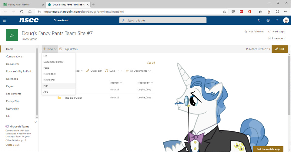 - Always make the Plan from the appropriate SharePoint Team Site first. This will make your life easier because you won’t have rando sites everywhere that only exist because they have a Plan attached to them. That’s madness.