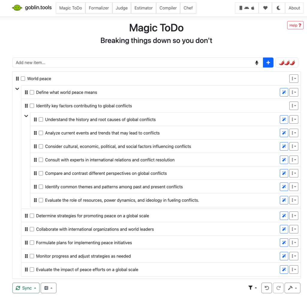 The team behind Goblin Tools has done an amazing job of creating a suite of tiny applications that are not only incredibly useful, but also genuinely fun to use. Take their Magic ToDo tool, for example. I’ve tried just about every to-do list app under the sun. But Magic ToDo is something kinda special. When I’m overwhelmed and have to brain-dump my tasks to get them out of my head so I can think, this fits the bill.